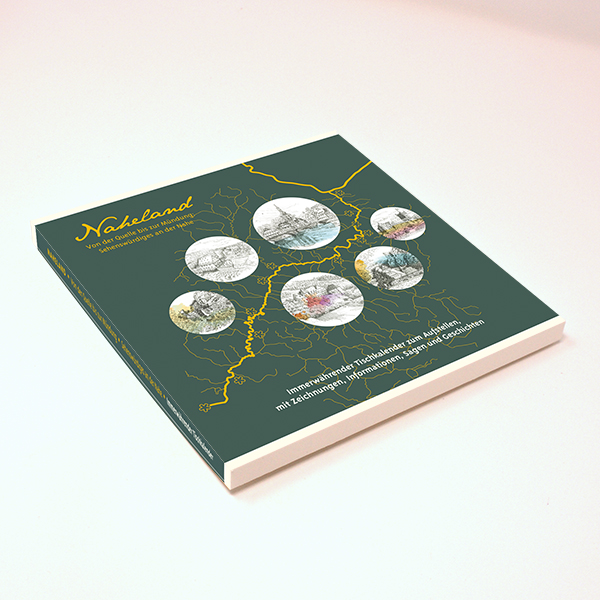 Der Clou bei diesen immerwährenden Kalendern ist die von mir entwickelte Konstruktion, die sich zusammen mit den quadratischen Kalenderblättern perfekt in eine edle, etwa CD-große Verpackung flach zusammenlegen lässt (148 x 148 mm). Meine handgezeichneten Illustrationen, auf den Rückseiten jeweils ergänzt mit Sagen, Historie und weiteren Informationen, machen diese Kalender zu attraktiven Geschenken.